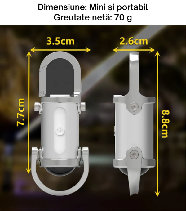 ✔️Se prinde compact pe chei sau rucsac pentru acces rapid.