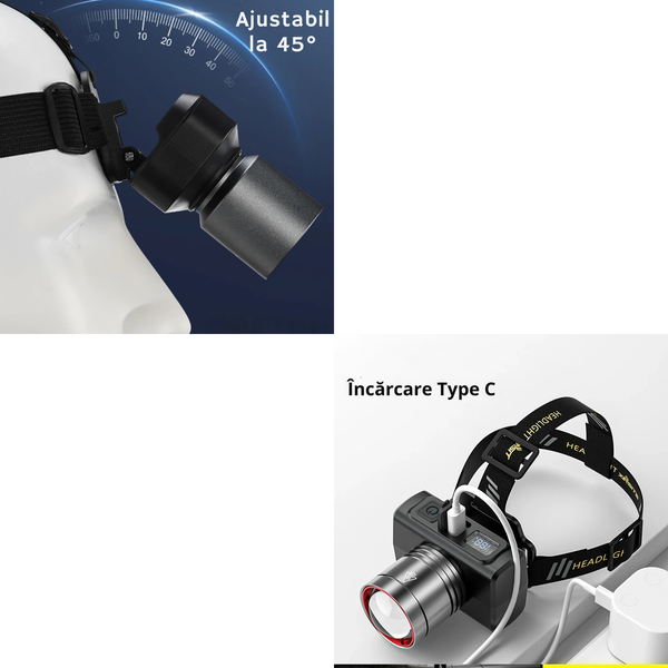 Iluminare cu mâinile libere pentru drumeții, pescuit și lucrări nocturne cu vizibilitate maximă, autonomie lungă și senzor de mișcare.
